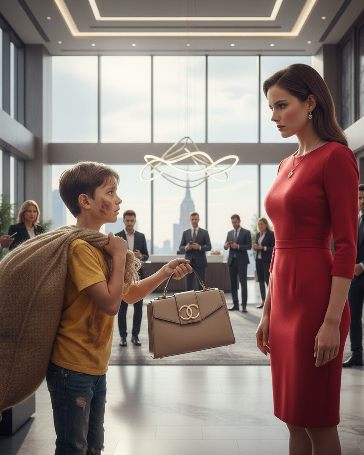 Na een paar meter, bij de eerste bocht, rolde de tas onopgemerkt de stoep op. De huidkleurige tas, elegant gesneden en gemaakt van glanzend metaal, lag verspreid op de grond. De waarde was vergelijkbaar met die van een klein appartement in de buitenwijk. Niemand wist dat er documenten in zaten die de reputatie van een miljonair konden redden of vernietigen. Na een paar minuten kwam een magere jongen in versleten kleren en met vuil haar onopgemerkt op haar af.