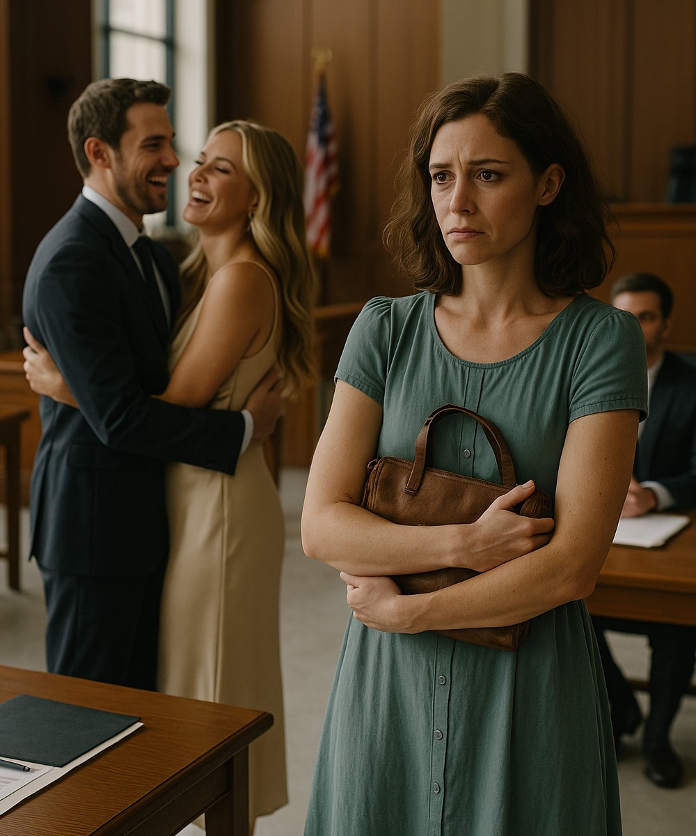 Aan de andere kant van de tafel ondertekende mijn ex-man Mark de papieren met een grijns die zo scherp was dat het pijn deed.
