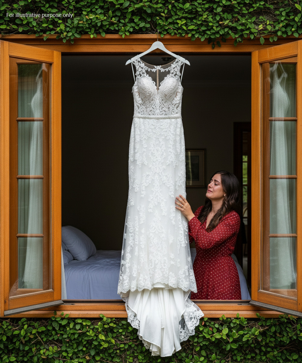 Er zat een trouwjurk in. Eenvoudig maar elegant – ivoorkleurig satijn met een kanten lijfje, onmiskenbaar uit de jaren 90. Ik wist het meteen: het was van mijn moeder.