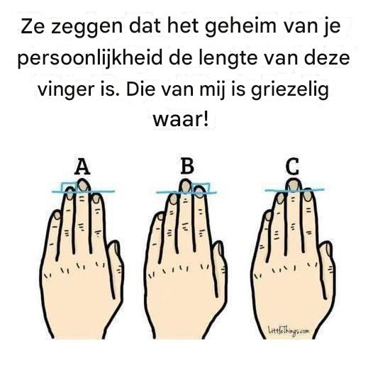 Ze zeggen dat het geheim van je persoonlijkheid de lengte van deze vinger is. Die van mij is griezelig waar! Lees verder