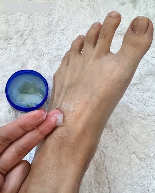 Een vrouw wrijft Vicks Vaporub op haar voeten voordat ze gaat slapen om deze briljante reden