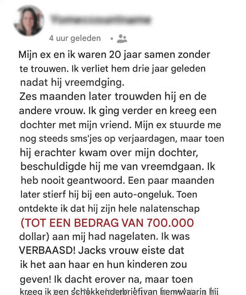Enkele maanden later hertrouwde hij, terwijl ik verder ging en een nieuw leven opbouwde met iemand die mij vrede en geluk bracht.