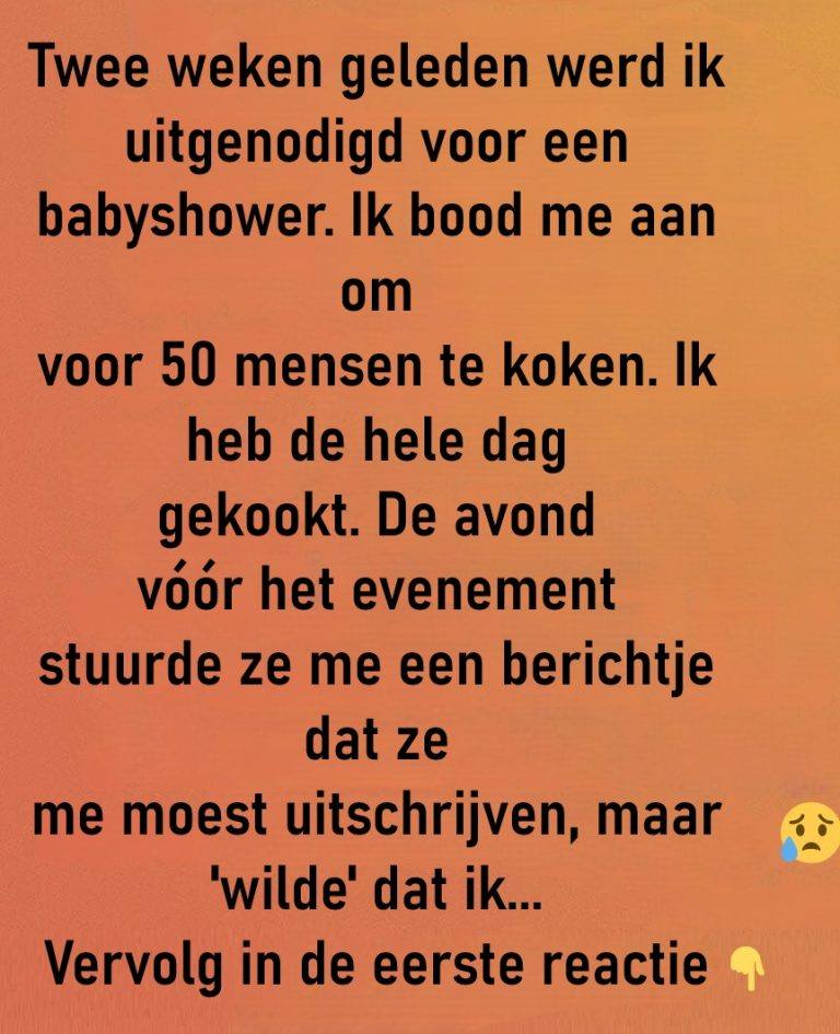 Ik heb uren besteed aan de voorbereidingen voor een babyshower, maar werd de avond ervoor niet uitgenodigd